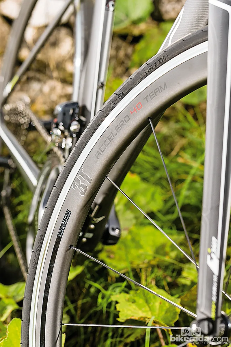 El perfil ancho y redondeado de las ruedas Accelero 40 Team de 3T proporciona una mayor superficie de contacto del neumÔtico y una conducción infaliblemente estable. Las llantas tienen una pista de frenado de aluminio para paradas fiables y un perfil carenado de carbono no estructural para mayor velocidad.