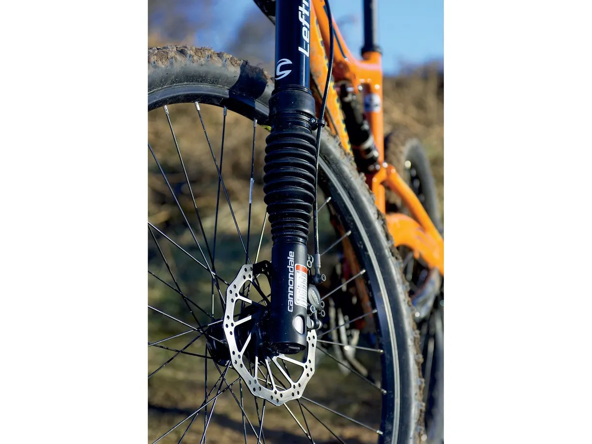 La suspensión tambiĆ©n es enormemente rĆgida, lo que hace que la Rush se comporte como una rĆgida la mayor parte del tiempo, por muy suave que sea el amortiguador. Una vez mĆ”s, esto es excelente para destrozar las subidas por caminos cortafuegos, pero gira en lugar de agarrarse en subidas tĆ©cnicas y con raĆces, y castaƱeta y traquetea a travĆ©s de pequeƱos baches y terreno duro. La falta de suspensión significa que tiende a salirse repentina y dramĆ”ticamente, en lugar de deslizarse si empujas la parte trasera con demasiada fuerza en las curvas. La buena noticia es que la horquilla Lefty delantera es una de las mejores de su tipo que hemos usado en mucho tiempo. El aceite de aire hace ruidos como ‘pfi sh’ y ‘siss’ en terreno accidentado, pero la compresión y la amortiguación de rebote especĆficas del tamaƱo son tan precisas y controladas como cualquier otra horquilla aquĆ, y la rigidez de seguimiento es fantĆ”stica. La extracción del neumĆ”tico/cĆ”mara es fĆ”cil y la eliminación del barro tambiĆ©n es enorme, aunque la tapa superior de rebote suelta seguĆa cayĆ©ndose incluso cuando estaba bien atornillada.