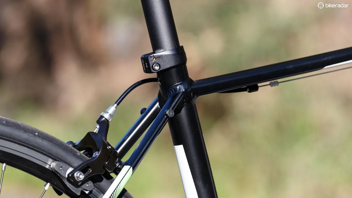 Si superas esa subida, probablemente te encontrarÔs con el primer punto negativo: los frenos. Estas pinzas Tektro bÔsicas te detendrÔn, pero no sucederÔ tan rÔpido como lo harÔ una pinza mÔs cara de Shimano. No es que estés fuera de control con estos, pero cambiar una pastilla de freno mÔs dura sin duda agregarÔ algo de confianza en la conducción.
